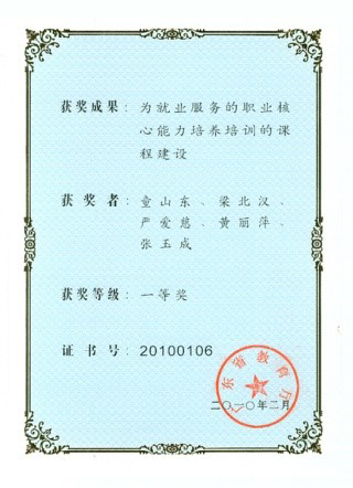 2010年,深圳信息职业技术学院童山东主持《为就业服务的职业核心能力培养培训的课程建设》成果获广东省第六届级教学成果一等奖